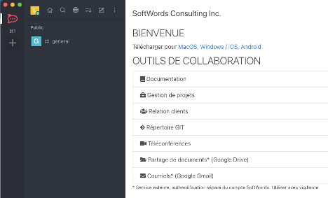 Toutes les applications collaboration de l'entreprise utilisent les identifiants de votre compte SoftWords.